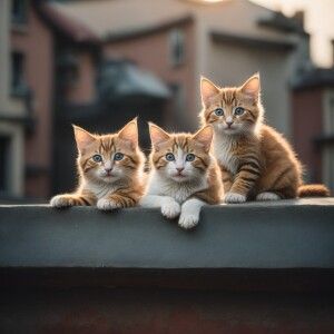«A cartoon of Three mischievous cats Sitting on a ledge, making g...»