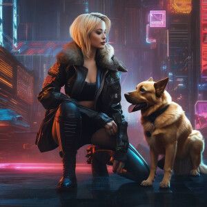 «A stunning blonde woman and her loyal canine companion»