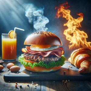 «Juice croissant of ham blue difumated backgrownd»
