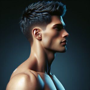 «A young handsome male model with a slim face and chisled jaw, fa...»