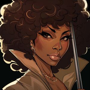 «A full bodied cartoon Illustrated of Pam Grier type as light co...»
