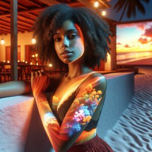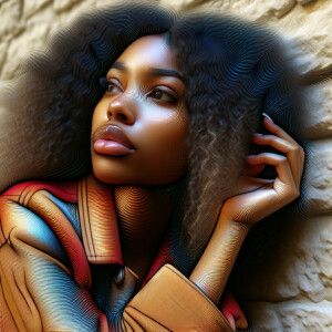 «Create a vivid 3D image of a stunning African American woman wit...»