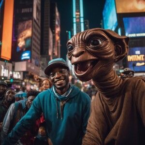 «Create an image of a Nigeria man taking a selfie with a life-siz...»