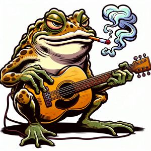 «Smoking Toad playing guitar.»