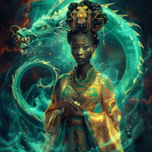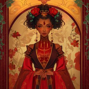 «Create an illustration of a Mixed Ethnicity Empress, embodying A...»