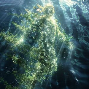 «Vivid animation of sea moss underwater, glowing and releasing en...»