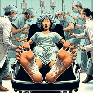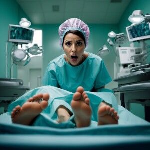 «19 year old panicked Spanish woman wearing surgical bouffant cap...»