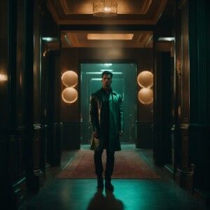 «Photorealistic image. Italian guy, blue eyes, black hair,neat 60...»