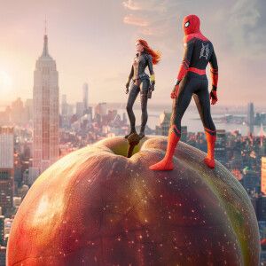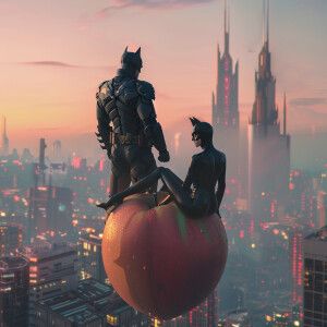 «Create a hyper-realistic scene featuring a peach floating in fro...»