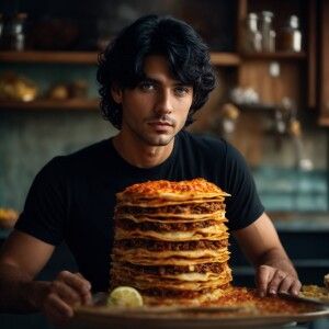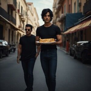 «Photorealistic image. Italian guy, blue eyes, black hair, beatle...»