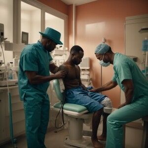 «A black man receives a buttock injection from a healthcare provi...»