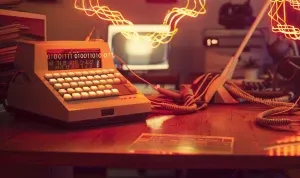 «/imagine prompt: cinematic close-up of a vintage CRT monitor dis...»