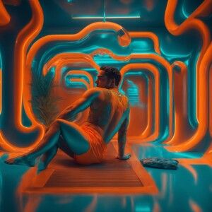 «A captivating 3D render of a confident, stunningly handsome gay...»
