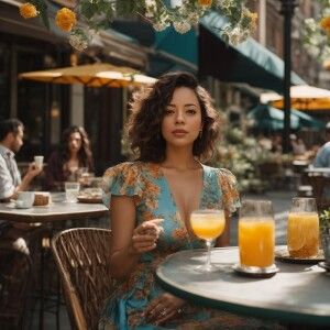 «Marisa Ramirez, wearing a floral pattern summer dress, sitting a...»