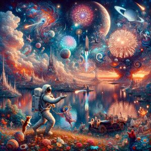 «A powerful wizard unleashing a dazzling lightning spell upon a d...»