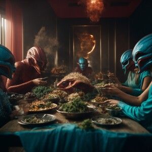 «A group of extraterrestrial beings devouring carcasses on the en...»