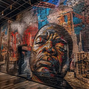 «a maximalist photo inspired by grafitti brick wall grim reaper...»