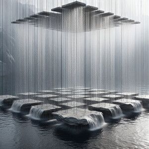 «Imagina una fuente colgante hecha de delgadas plataformas de can...»