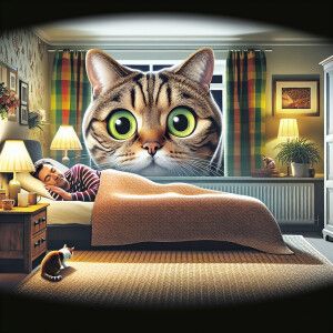 «A cartoon of a cat peering over you while you are sleeping»