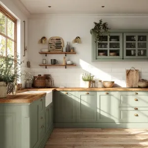 «Generate a realistic image of a farmhouse kitchen showcasing sag...»