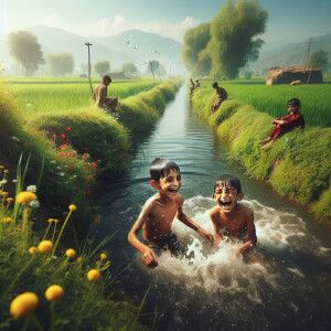 «Pakistani villager boys taking bath in canal»