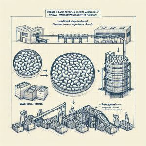 «Create a simplified sketch of a small mango packing plant in Pak...»
