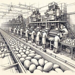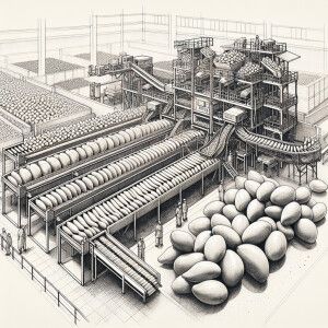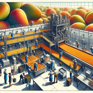 «Create a sketch depicting a mango packing plant with a machine l...»