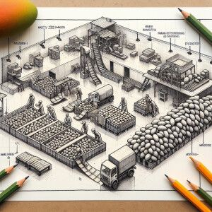 «Create a sketch of a very small mango packing plant in Pakistan...»