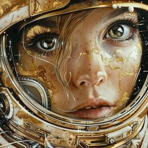 «женское лицо , акцент на левом глазе , в глазе космос»