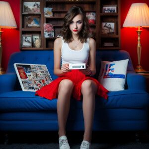 «Photo of fair skinned young brunette woman influencer with petit...»