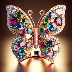«Create a stunning Rosa gold butterfly ring featuring a vibrant a...»