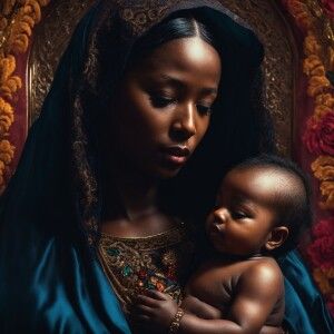 «Black Virgin Mary holding baby Jesus»