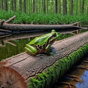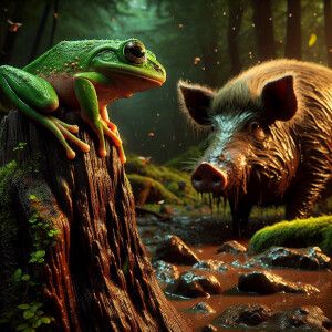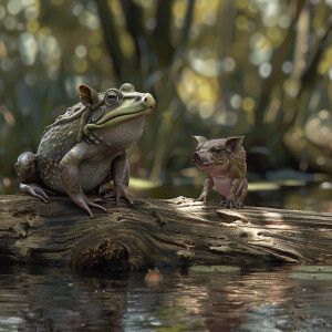 «A frog sat on a log watching a hog, HDR, masterpiece, ultra-det...»