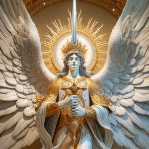 «```The archangel is depicted in his divine form a majestic, sere...»