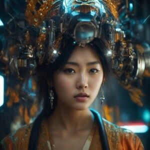 «Photorealistic portrait of a fashion model, female, asian»