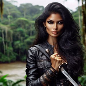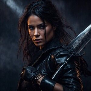 «Powerful female warrior, strong but beautiful, engaging eyes, th...»