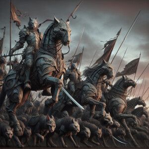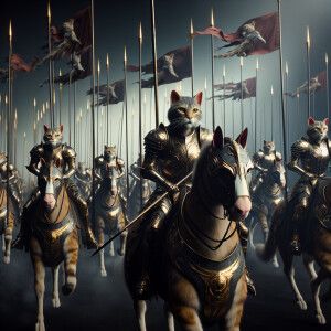 «Create a realistic picture of a legion of humanoid cats as Calva...»