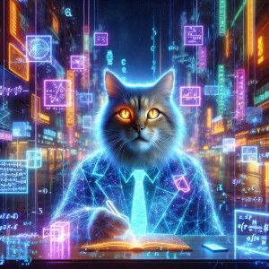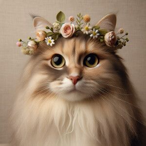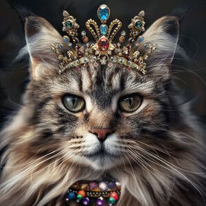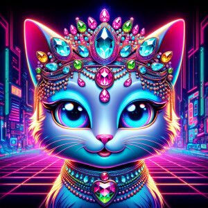«A cartoon. Beautiful cat, staring directly at the camera wearing...»