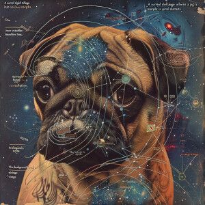 "A surreal digital collage where a pug's...»