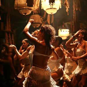 «Describe a mesmerizing samba performance in a dimly lit, intimat...»