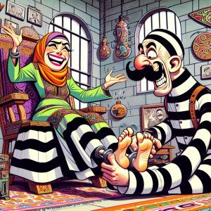 «Foot tickling interrogation scene from a cartoon with a woman as...»