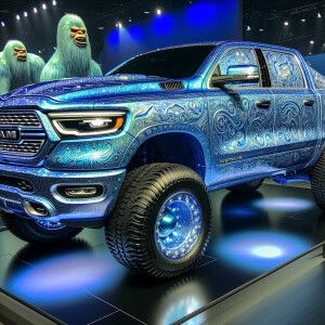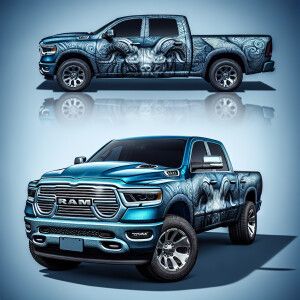 «2018 dodge ram all metallic blue, intricate ornamental design e...»