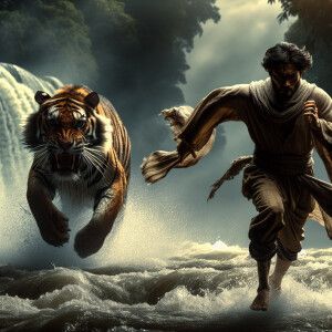 «Poor man running from tiger and have to swim across river»