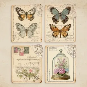 «Victorian Butterfly Cabinet – 4 Cards (Romantic Specimens)