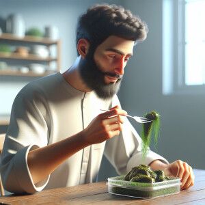 «Create a 3d high resolution image of a man eating sea moss»