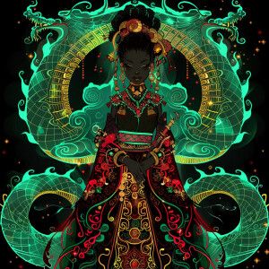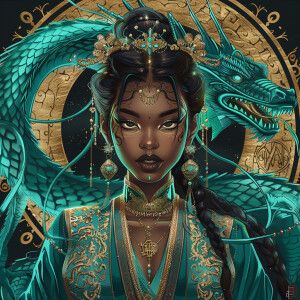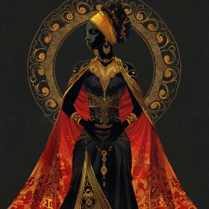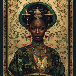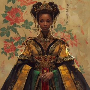 «Illustrate a regal Empress reflecting a blend of African and Asi...»
