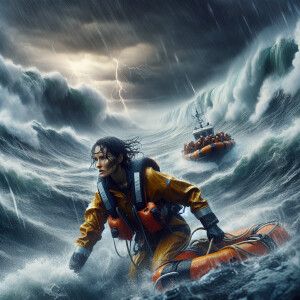 «Stormy Sea Rescue: Battling the elements during a rescue mission...»