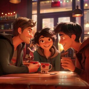 «In Disney Pixar fashion: The trio sharing a laugh together, in a...»