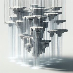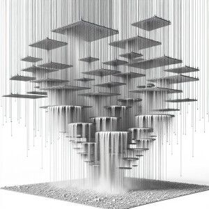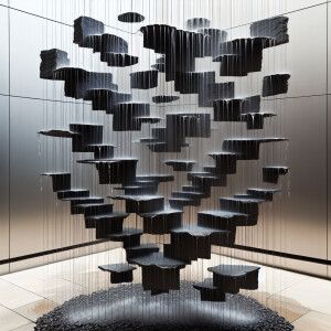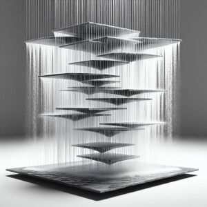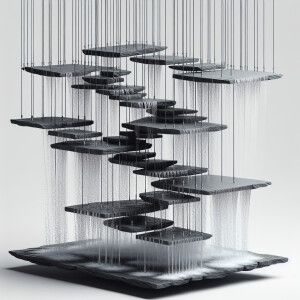«Imagina una fuente colgante hecha de delgadas plataformas de can...»