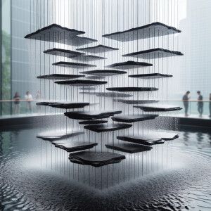 «Visualiza una fuente colgante tipo catarata formada por múltiple...»